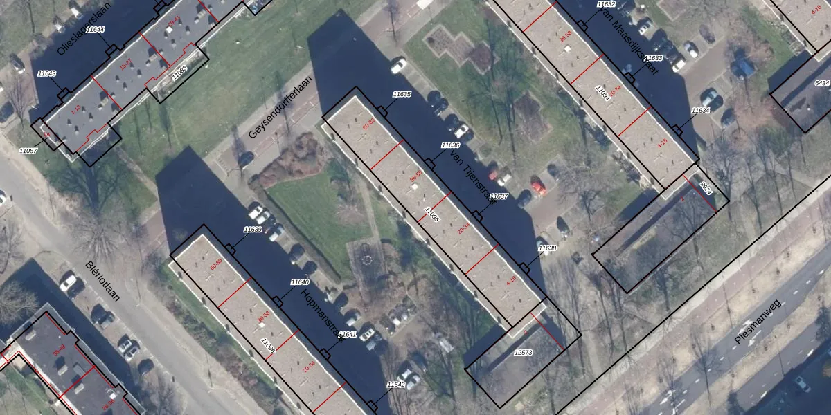 Het perceel waarop van Tijenstraat 54 staat heeft een oppervlakte van 758 m². Dit is een groot perceel. De perceeloppervlakte wordt geregistreerd door het Kadaster. Gedetailleerde informatie over de maten van dit perceel kunt u vinden in het rapport Kadastrale kaart met maatvoering van van Tijenstraat 54.