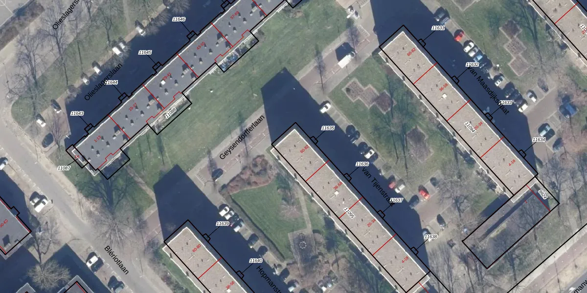 Het perceel waarop van Tijenstraat 76 staat heeft een oppervlakte van 758 m². Dit is een groot perceel. De perceeloppervlakte wordt geregistreerd door het Kadaster. Gedetailleerde informatie over de maten van dit perceel kunt u vinden in het rapport Kadastrale kaart met maatvoering van van Tijenstraat 76.