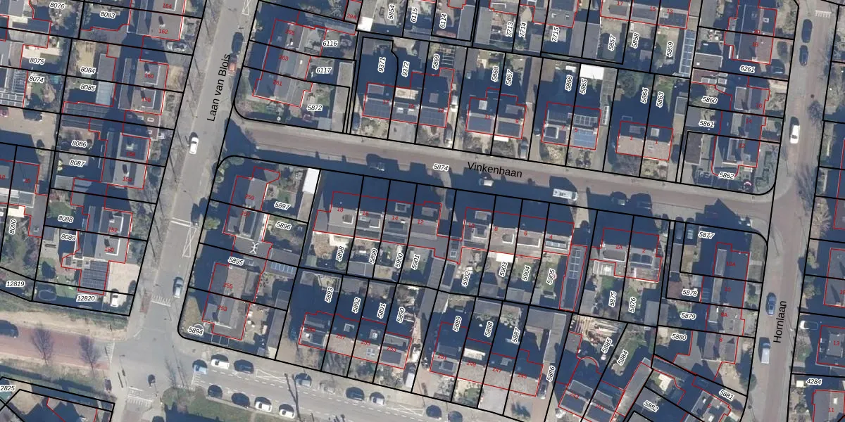 Gebruik de zoekbalk of klik op een perceel voor informatie over de adressen binnen dit perceel.