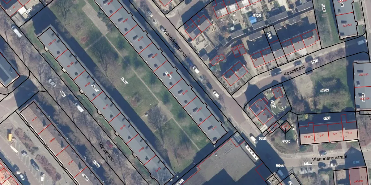 Het perceel waarop Vlaanderenstraat 34 staat heeft een oppervlakte van 1022 m². Dit is een zeer groot perceel. De perceeloppervlakte wordt geregistreerd door het Kadaster. Gedetailleerde informatie over de maten van dit perceel kunt u vinden in het rapport Kadastrale kaart met maatvoering van Vlaanderenstraat 34.