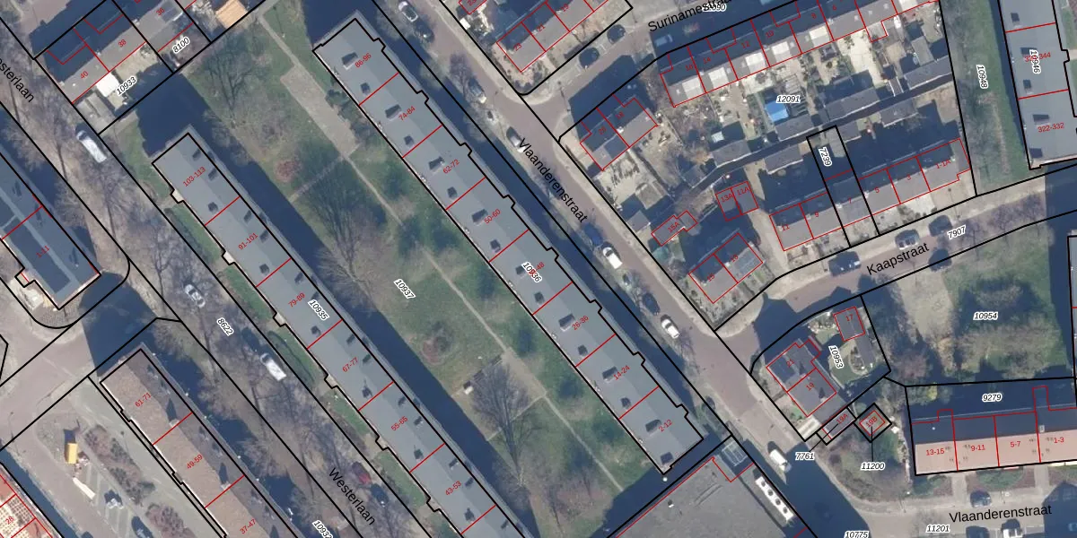 Het perceel waarop Vlaanderenstraat 46 staat heeft een oppervlakte van 1022 m². Dit is een zeer groot perceel. De perceeloppervlakte wordt geregistreerd door het Kadaster. Gedetailleerde informatie over de maten van dit perceel kunt u vinden in het rapport Kadastrale kaart met maatvoering van Vlaanderenstraat 46.
