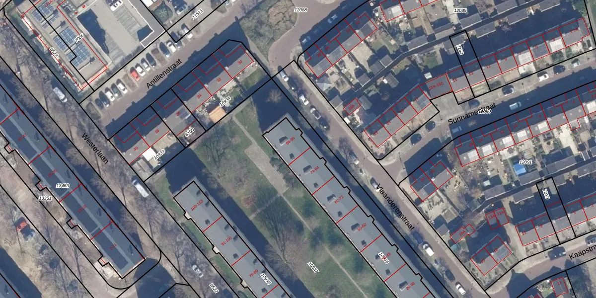 Het perceel waarop Vlaanderenstraat 92 staat heeft een oppervlakte van 1022 m². Dit is een zeer groot perceel. De perceeloppervlakte wordt geregistreerd door het Kadaster. Gedetailleerde informatie over de maten van dit perceel kunt u vinden in het rapport Kadastrale kaart met maatvoering van Vlaanderenstraat 92.