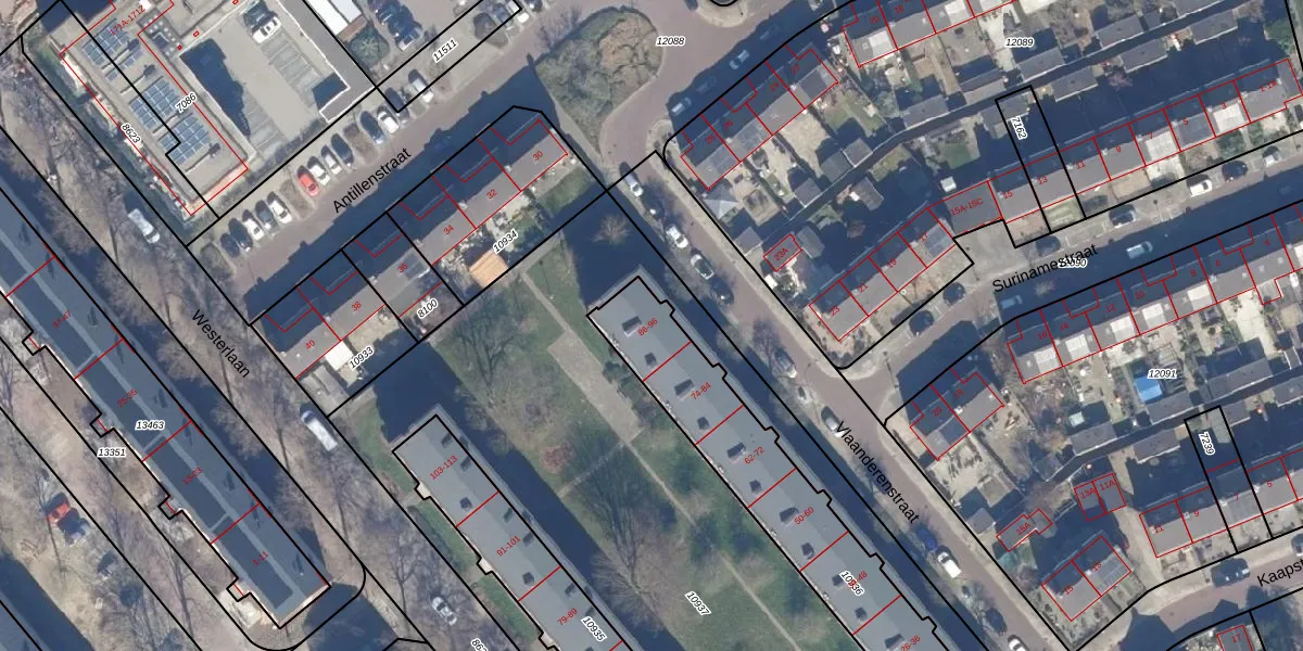 Het perceel waarop Vlaanderenstraat 94 staat heeft een oppervlakte van 1022 m². Dit is een zeer groot perceel. De perceeloppervlakte wordt geregistreerd door het Kadaster. Gedetailleerde informatie over de maten van dit perceel kunt u vinden in het rapport Kadastrale kaart met maatvoering van Vlaanderenstraat 94.