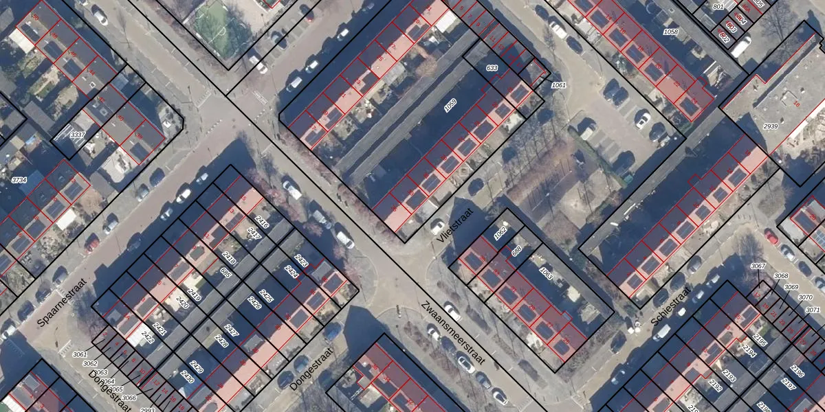 Het perceel waarop Vlietstraat 33 staat heeft een oppervlakte van 1977 m². Dit is een zeer groot perceel. De perceeloppervlakte wordt geregistreerd door het Kadaster. Gedetailleerde informatie over de maten van dit perceel kunt u vinden in het rapport Kadastrale kaart met maatvoering van Vlietstraat 33.