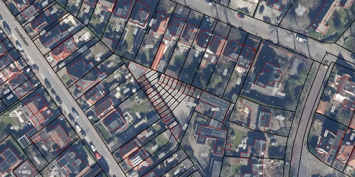 Het perceel waarop Vondellaan 77-D staat heeft een oppervlakte van 26 m². Dit is een klein perceel. De perceeloppervlakte wordt geregistreerd door het Kadaster. Gedetailleerde informatie over de maten van dit perceel kunt u vinden in het rapport Kadastrale kaart met maatvoering van Vondellaan 77-D.