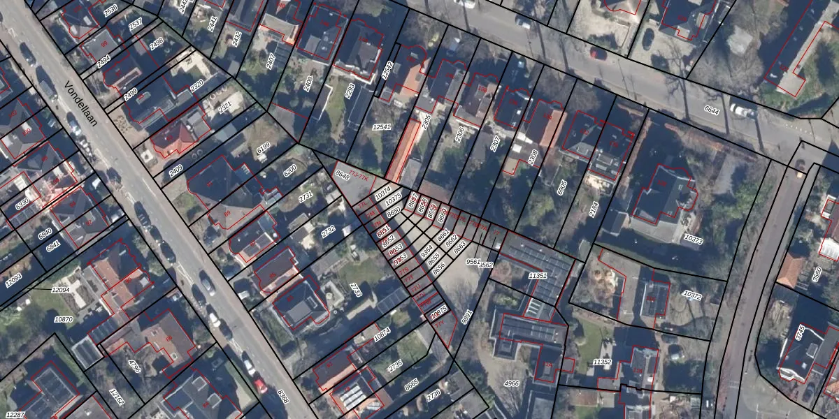 Het perceel waarop Vondellaan 77-G staat heeft een oppervlakte van 19 m². Dit is een klein perceel. De perceeloppervlakte wordt geregistreerd door het Kadaster. Gedetailleerde informatie over de maten van dit perceel kunt u vinden in het rapport Kadastrale kaart met maatvoering van Vondellaan 77-G.