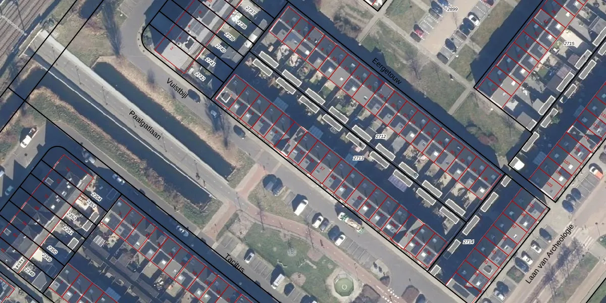 Het perceel waarop Vuistbijl 13 staat heeft een oppervlakte van 1900 m². Dit is een zeer groot perceel. De perceeloppervlakte wordt geregistreerd door het Kadaster. Gedetailleerde informatie over de maten van dit perceel kunt u vinden in het rapport Kadastrale kaart met maatvoering van Vuistbijl 13.