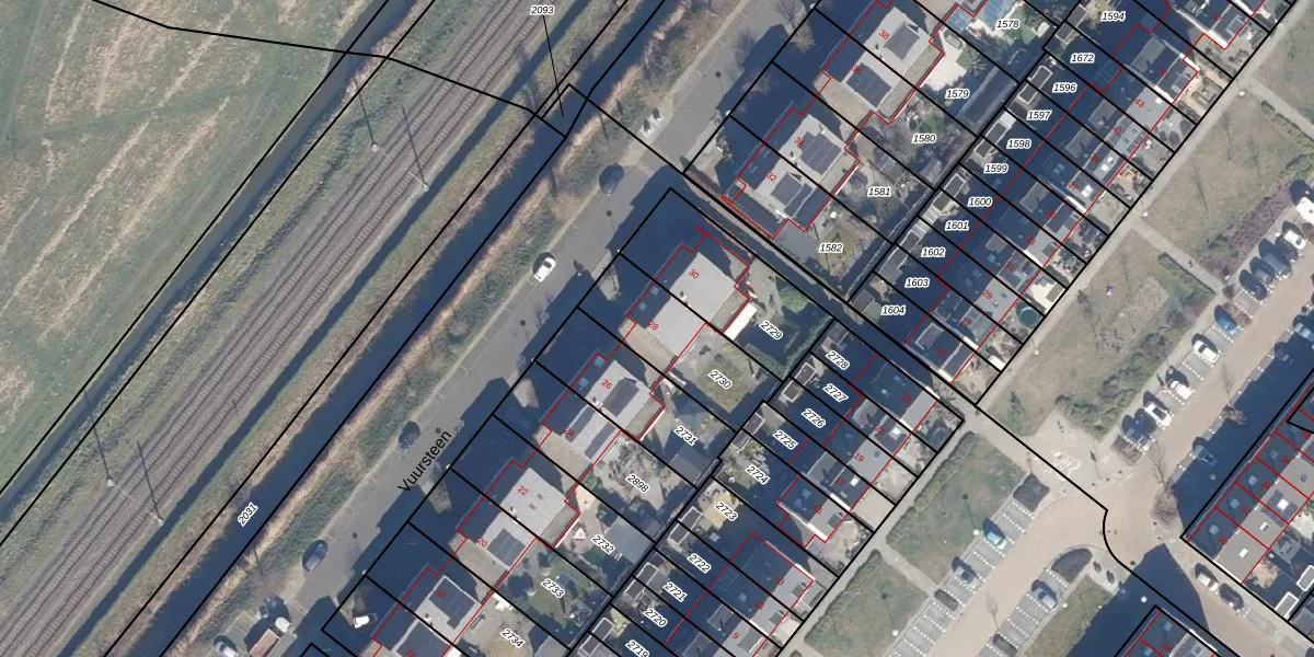 Het perceel waarop Vuursteen 28 staat heeft een oppervlakte van 327 m². Dit is een groot perceel. De perceeloppervlakte wordt geregistreerd door het Kadaster. Gedetailleerde informatie over de maten van dit perceel kunt u vinden in het rapport Kadastrale kaart met maatvoering van Vuursteen 28.