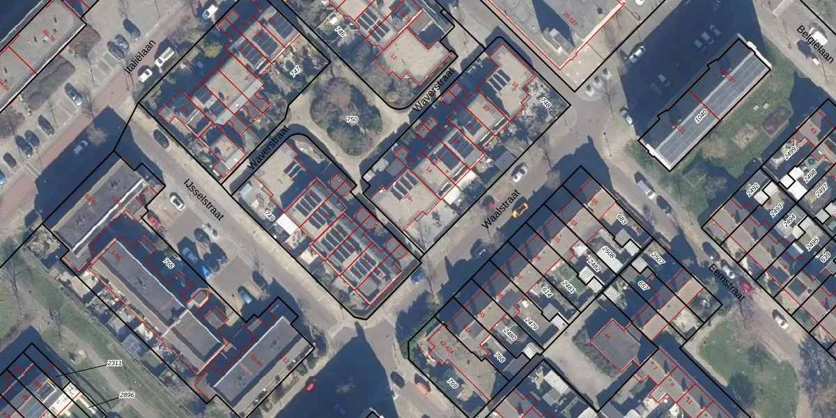 Het perceel waarop Waalstraat 16 staat heeft een oppervlakte van 1179 m². Dit is een zeer groot perceel. De perceeloppervlakte wordt geregistreerd door het Kadaster. Gedetailleerde informatie over de maten van dit perceel kunt u vinden in het rapport Kadastrale kaart met maatvoering van Waalstraat 16.