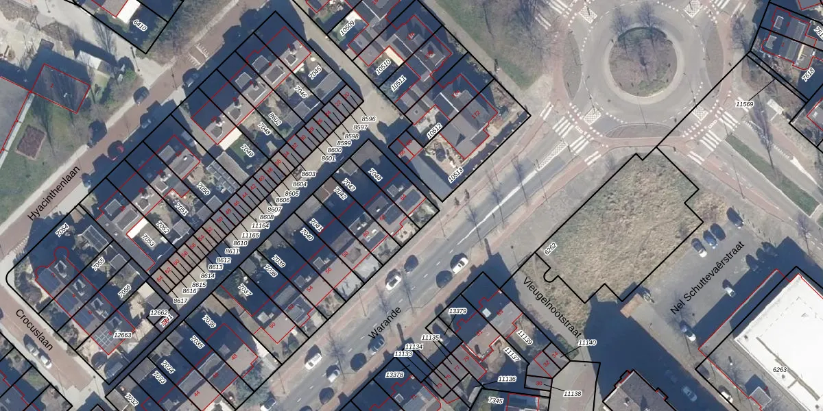 Het perceel waarop Warande 64 staat heeft een oppervlakte van 159 m². Dit is een middelgroot perceel. De perceeloppervlakte wordt geregistreerd door het Kadaster. Gedetailleerde informatie over de maten van dit perceel kunt u vinden in het rapport Kadastrale kaart met maatvoering van Warande 64.