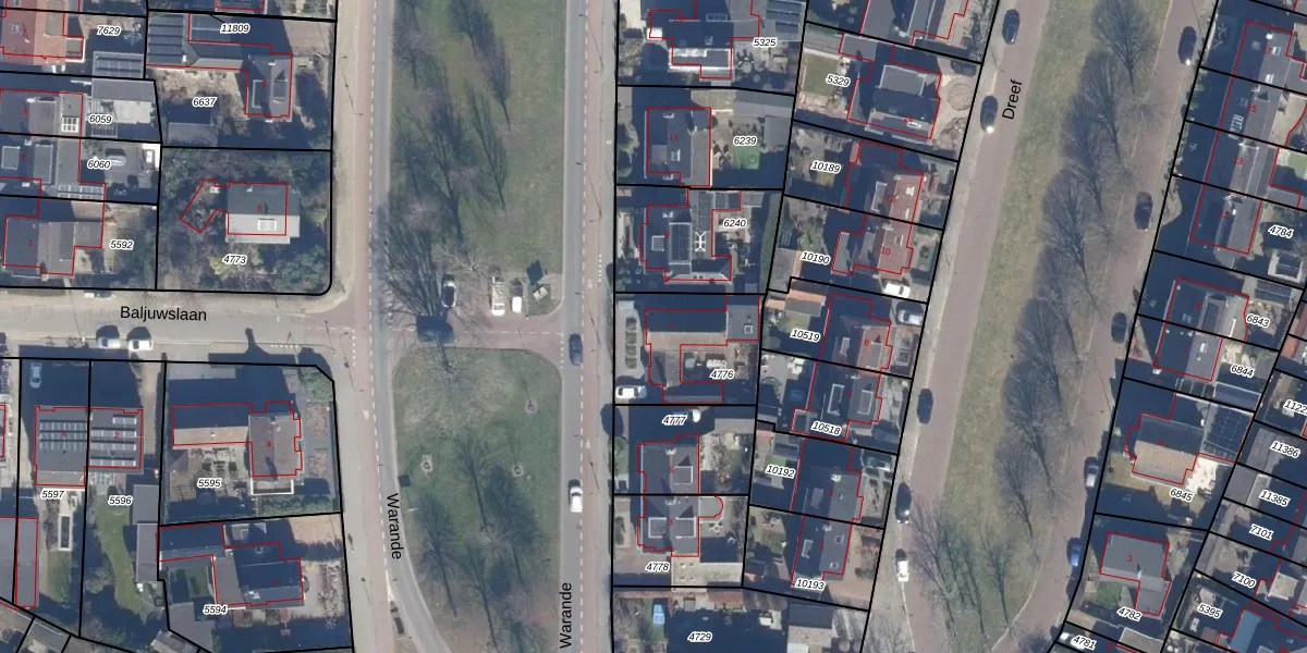 Het perceel waarop Warande 7 staat heeft een oppervlakte van 381 m². Dit is een groot perceel. De perceeloppervlakte wordt geregistreerd door het Kadaster. Gedetailleerde informatie over de maten van dit perceel kunt u vinden in het rapport Kadastrale kaart met maatvoering van Warande 7.