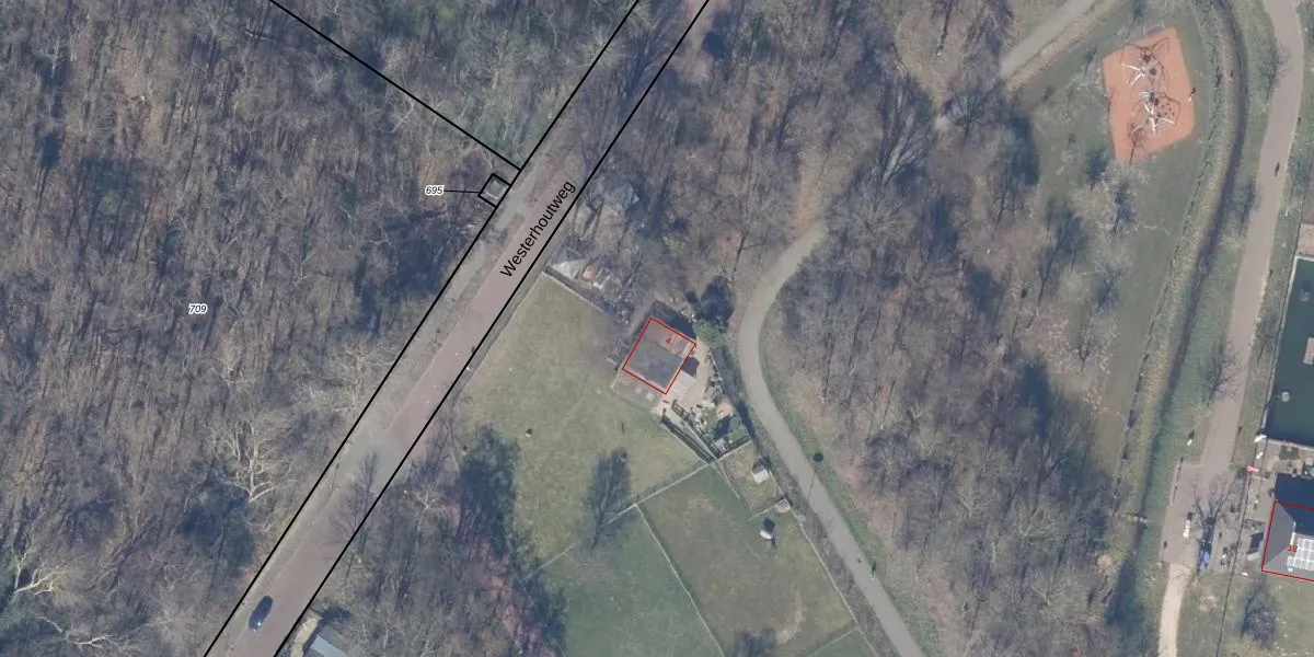Het perceel waarop Westerhoutweg 4 staat heeft een oppervlakte van 10,6 ha. Dit is een zeer groot perceel. De perceeloppervlakte wordt geregistreerd door het Kadaster. Gedetailleerde informatie over de maten van dit perceel kunt u vinden in het rapport Kadastrale kaart met maatvoering van Westerhoutweg 4.
