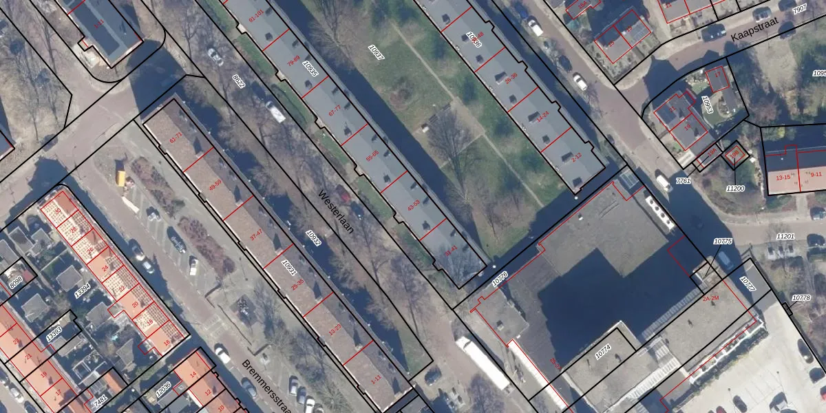 Het perceel waarop Westerlaan 51 staat heeft een oppervlakte van 933 m². Dit is een groot perceel. De perceeloppervlakte wordt geregistreerd door het Kadaster. Gedetailleerde informatie over de maten van dit perceel kunt u vinden in het rapport Kadastrale kaart met maatvoering van Westerlaan 51.