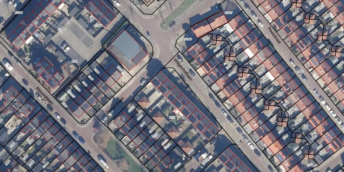 Het perceel waarop Wilgenhoflaan 78 staat heeft een oppervlakte van 1350 m². Dit is een zeer groot perceel. De perceeloppervlakte wordt geregistreerd door het Kadaster. Gedetailleerde informatie over de maten van dit perceel kunt u vinden in het rapport Kadastrale kaart met maatvoering van Wilgenhoflaan 78.