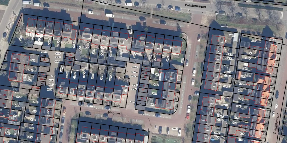 Het perceel waarop Wingerd 28 staat heeft een oppervlakte van 19 m². Dit is een klein perceel. De perceeloppervlakte wordt geregistreerd door het Kadaster. Gedetailleerde informatie over de maten van dit perceel kunt u vinden in het rapport Kadastrale kaart met maatvoering van Wingerd 28.