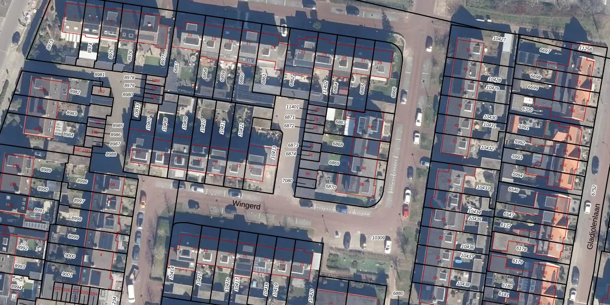 Het perceel waarop Wingerd 34 staat heeft een oppervlakte van 19 m². Dit is een klein perceel. De perceeloppervlakte wordt geregistreerd door het Kadaster. Gedetailleerde informatie over de maten van dit perceel kunt u vinden in het rapport Kadastrale kaart met maatvoering van Wingerd 34.