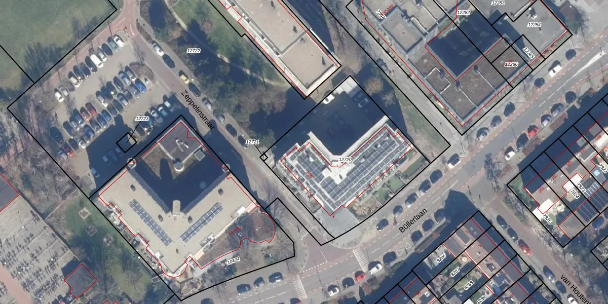 Het perceel waarop Zeppelinstraat 30 staat heeft een oppervlakte van 1555 m². Dit is een zeer groot perceel. De perceeloppervlakte wordt geregistreerd door het Kadaster. Gedetailleerde informatie over de maten van dit perceel kunt u vinden in het rapport Kadastrale kaart met maatvoering van Zeppelinstraat 30.