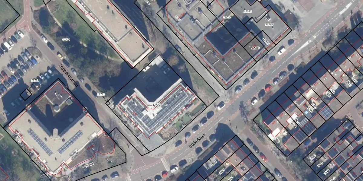 Het perceel waarop Zeppelinstraat 42 staat heeft een oppervlakte van 1555 m². Dit is een zeer groot perceel. De perceeloppervlakte wordt geregistreerd door het Kadaster. Gedetailleerde informatie over de maten van dit perceel kunt u vinden in het rapport Kadastrale kaart met maatvoering van Zeppelinstraat 42.
