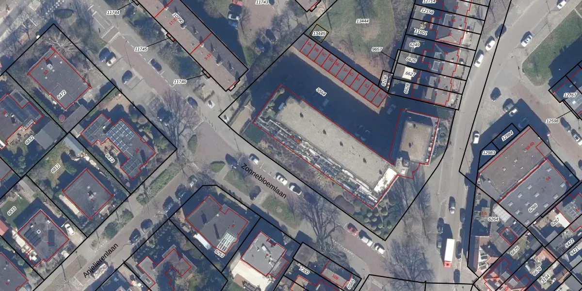Het perceel waarop Zonnebloemlaan 1-1 staat heeft een oppervlakte van 2939 m². Dit is een zeer groot perceel. De perceeloppervlakte wordt geregistreerd door het Kadaster. Gedetailleerde informatie over de maten van dit perceel kunt u vinden in het rapport Kadastrale kaart met maatvoering van Zonnebloemlaan 1-1.