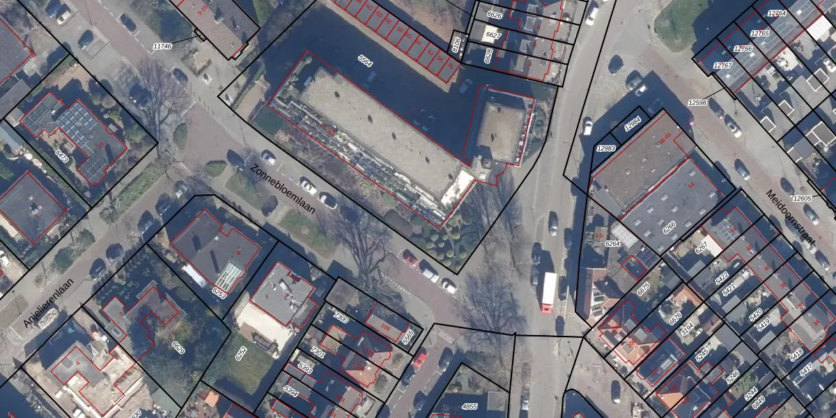 Het perceel waarop Zonnebloemlaan 1-9 staat heeft een oppervlakte van 2939 m². Dit is een zeer groot perceel. De perceeloppervlakte wordt geregistreerd door het Kadaster. Gedetailleerde informatie over de maten van dit perceel kunt u vinden in het rapport Kadastrale kaart met maatvoering van Zonnebloemlaan 1-9.