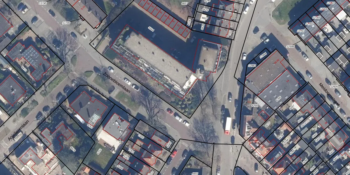 Het perceel waarop Zonnebloemlaan 1-19 staat heeft een oppervlakte van 2939 m². Dit is een zeer groot perceel. De perceeloppervlakte wordt geregistreerd door het Kadaster. Gedetailleerde informatie over de maten van dit perceel kunt u vinden in het rapport Kadastrale kaart met maatvoering van Zonnebloemlaan 1-19.