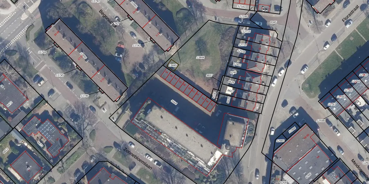 Het perceel waarop Zonnebloemlaan 5-F staat heeft een oppervlakte van 2939 m². Dit is een zeer groot perceel. De perceeloppervlakte wordt geregistreerd door het Kadaster. Gedetailleerde informatie over de maten van dit perceel kunt u vinden in het rapport Kadastrale kaart met maatvoering van Zonnebloemlaan 5-F.
