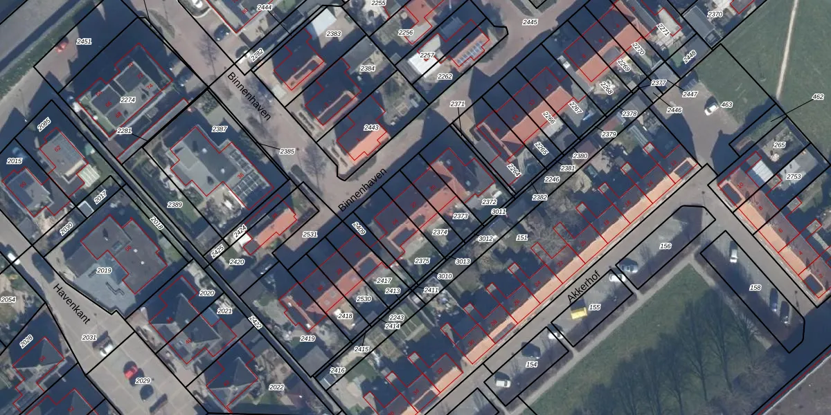 Het perceel waarop Binnenhaven 22 staat heeft een oppervlakte van 140 m². Dit is een middelgroot perceel. De perceeloppervlakte wordt geregistreerd door het Kadaster. Gedetailleerde informatie over de maten van dit perceel kunt u vinden in het rapport Kadastrale kaart met maatvoering van Binnenhaven 22.