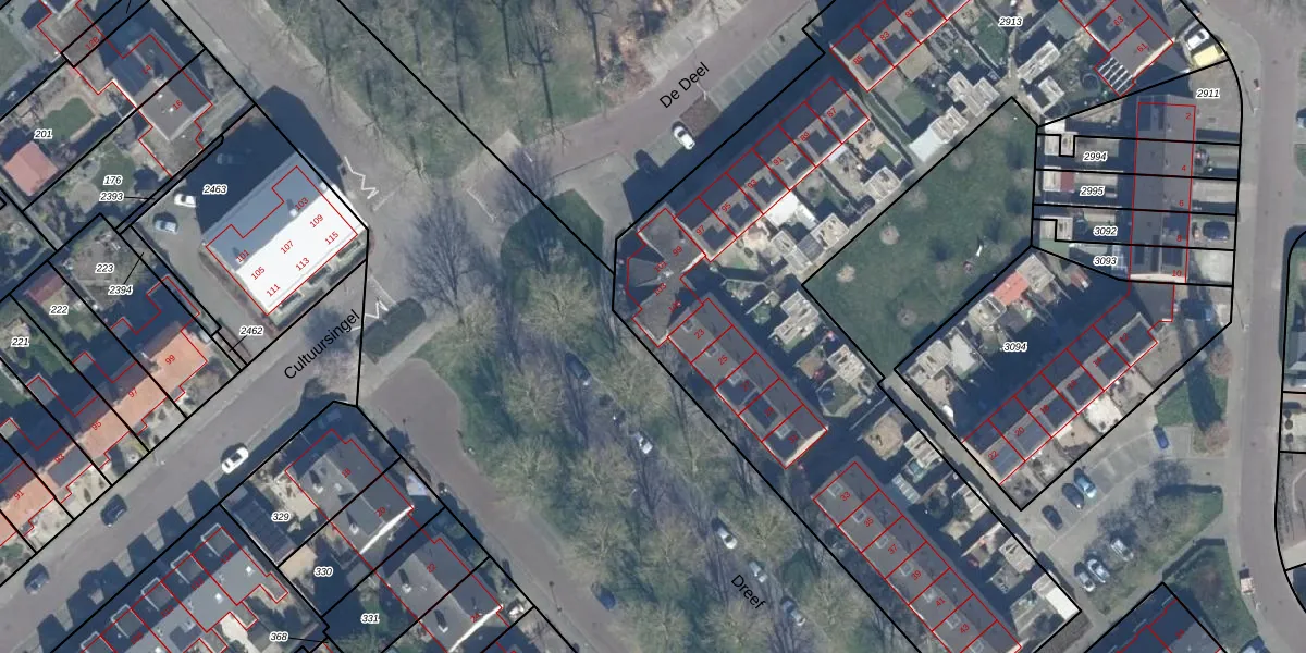 Het perceel waarop De Deel 105 staat heeft een oppervlakte van 4386 m². Dit is een zeer groot perceel. De perceeloppervlakte wordt geregistreerd door het Kadaster. Gedetailleerde informatie over de maten van dit perceel kunt u vinden in het rapport Kadastrale kaart met maatvoering van De Deel 105.