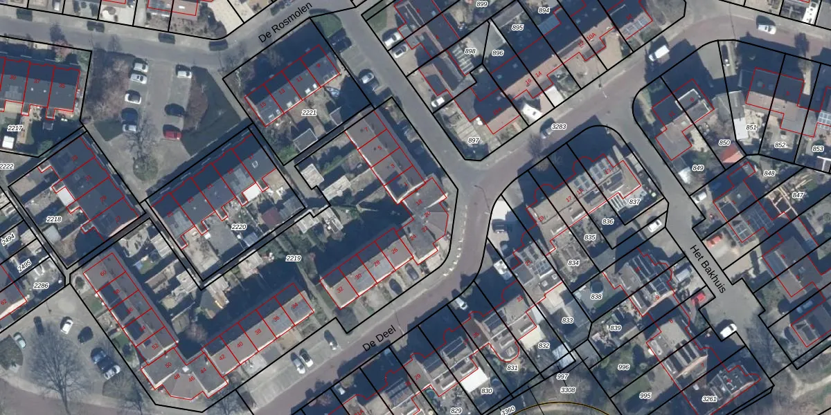 Het perceel waarop De Deel 18 staat heeft een oppervlakte van 3079 m². Dit is een zeer groot perceel. De perceeloppervlakte wordt geregistreerd door het Kadaster. Gedetailleerde informatie over de maten van dit perceel kunt u vinden in het rapport Kadastrale kaart met maatvoering van De Deel 18.