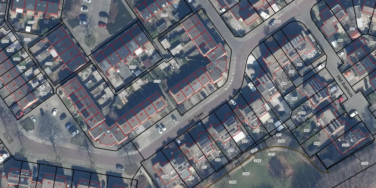 Het perceel waarop De Deel 30 staat heeft een oppervlakte van 3079 m². Dit is een zeer groot perceel. De perceeloppervlakte wordt geregistreerd door het Kadaster. Gedetailleerde informatie over de maten van dit perceel kunt u vinden in het rapport Kadastrale kaart met maatvoering van De Deel 30.