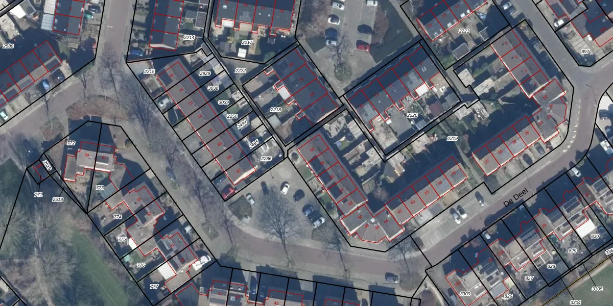 Het perceel waarop De Deel 60 staat heeft een oppervlakte van 3079 m². Dit is een zeer groot perceel. De perceeloppervlakte wordt geregistreerd door het Kadaster. Gedetailleerde informatie over de maten van dit perceel kunt u vinden in het rapport Kadastrale kaart met maatvoering van De Deel 60.