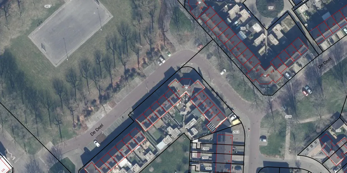 Het perceel waarop De Deel 75 staat heeft een oppervlakte van 4386 m². Dit is een zeer groot perceel. De perceeloppervlakte wordt geregistreerd door het Kadaster. Gedetailleerde informatie over de maten van dit perceel kunt u vinden in het rapport Kadastrale kaart met maatvoering van De Deel 75.