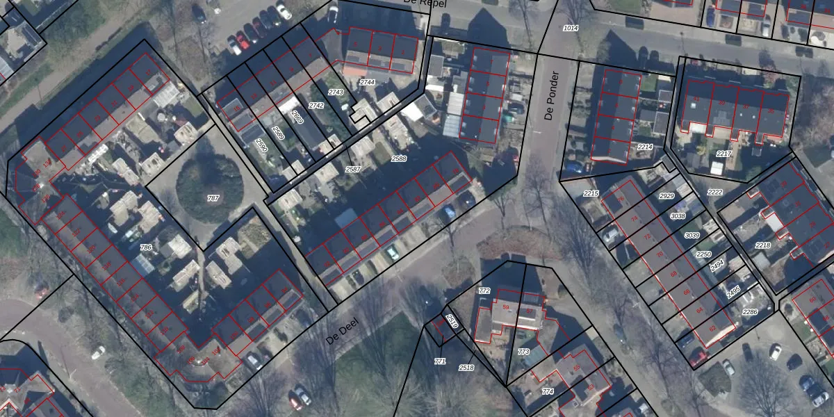 Het perceel waarop De Deel 82 staat heeft een oppervlakte van 1991 m². Dit is een zeer groot perceel. De perceeloppervlakte wordt geregistreerd door het Kadaster. Gedetailleerde informatie over de maten van dit perceel kunt u vinden in het rapport Kadastrale kaart met maatvoering van De Deel 82.