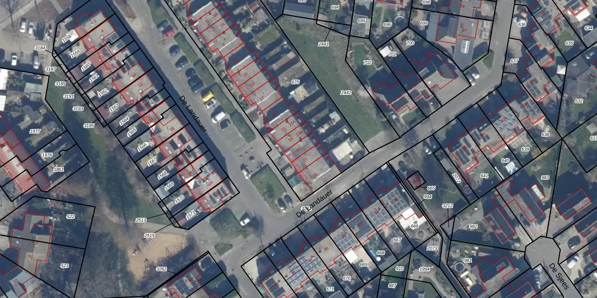 De Landauer 25 is gelegen op kadastraal perceel DTN01E675. Deze kadastrale aanduiding is uniek en wordt gebruikt door het Kadaster om eigendomsrechten en andere zakelijke rechten vast te leggen. Het perceel maakt onderdeel uit van de kadastrale gemeente Dronten.
