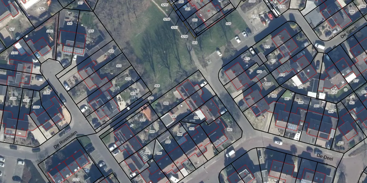 Gebruik de zoekbalk of klik op een perceel voor informatie over de adressen binnen dit perceel.