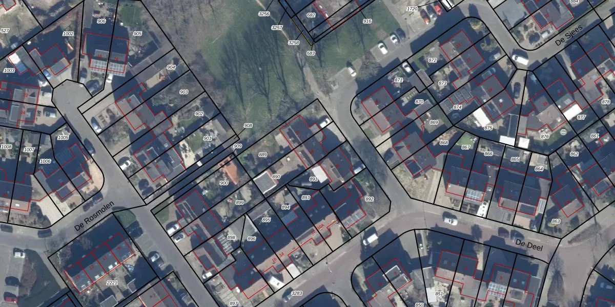 Het perceel waarop De Sjees 34 staat heeft een oppervlakte van 254 m². Dit is een middelgroot perceel. De perceeloppervlakte wordt geregistreerd door het Kadaster. Gedetailleerde informatie over de maten van dit perceel kunt u vinden in het rapport Kadastrale kaart met maatvoering van De Sjees 34.