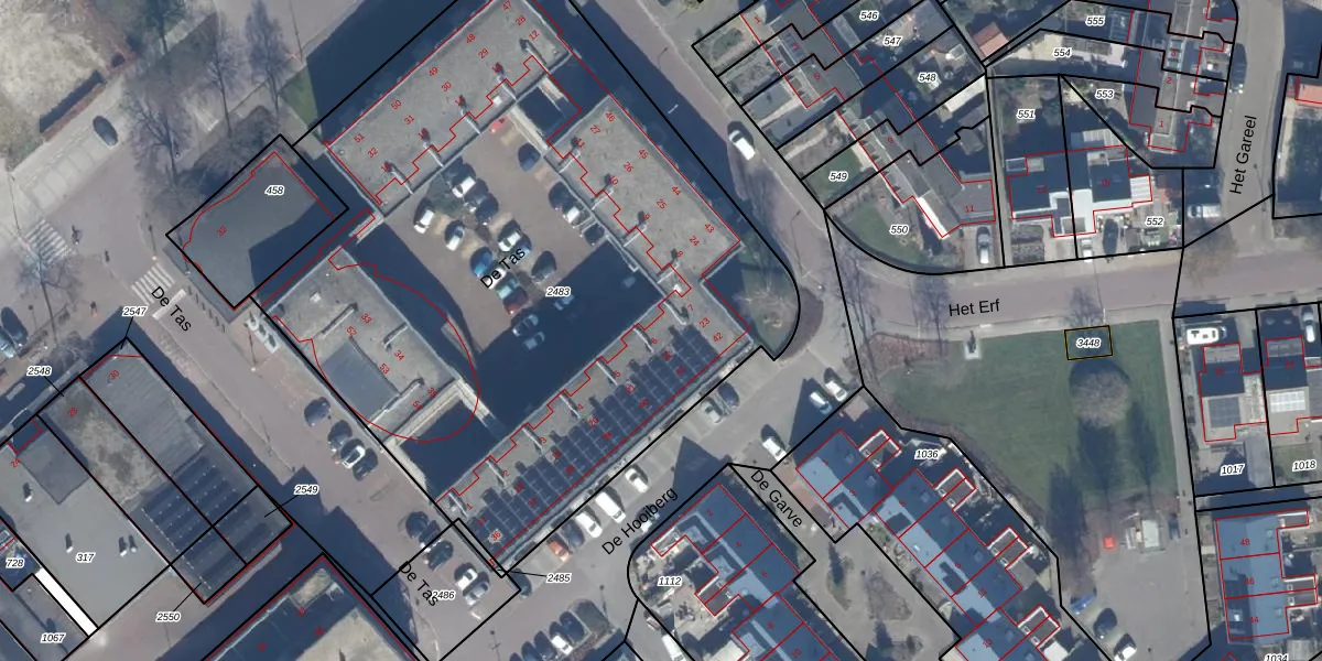De Tas 13 is gelegen op kadastraal perceel DTN01E2483. Deze kadastrale aanduiding is uniek en wordt gebruikt door het Kadaster om eigendomsrechten en andere zakelijke rechten vast te leggen. Het perceel maakt onderdeel uit van de kadastrale gemeente Dronten.
