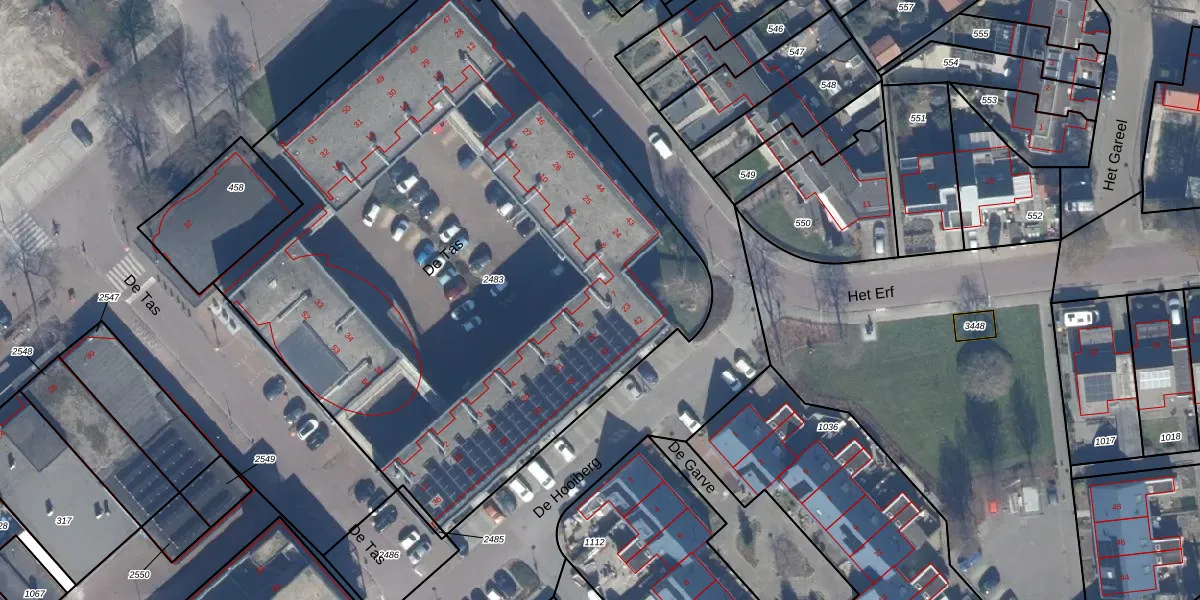 Het perceel waarop De Tas 14 staat heeft een oppervlakte van 4240 m². Dit is een zeer groot perceel. De perceeloppervlakte wordt geregistreerd door het Kadaster. Gedetailleerde informatie over de maten van dit perceel kunt u vinden in het rapport Kadastrale kaart met maatvoering van De Tas 14.