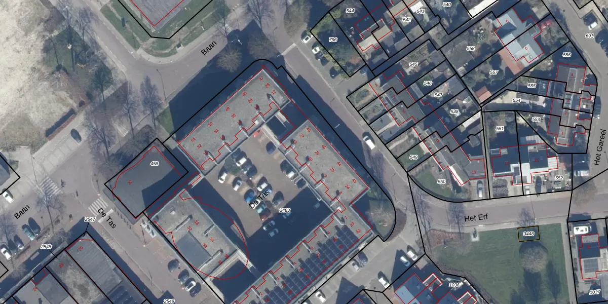 Het perceel waarop De Tas 22 staat heeft een oppervlakte van 4240 m². Dit is een zeer groot perceel. De perceeloppervlakte wordt geregistreerd door het Kadaster. Gedetailleerde informatie over de maten van dit perceel kunt u vinden in het rapport Kadastrale kaart met maatvoering van De Tas 22.