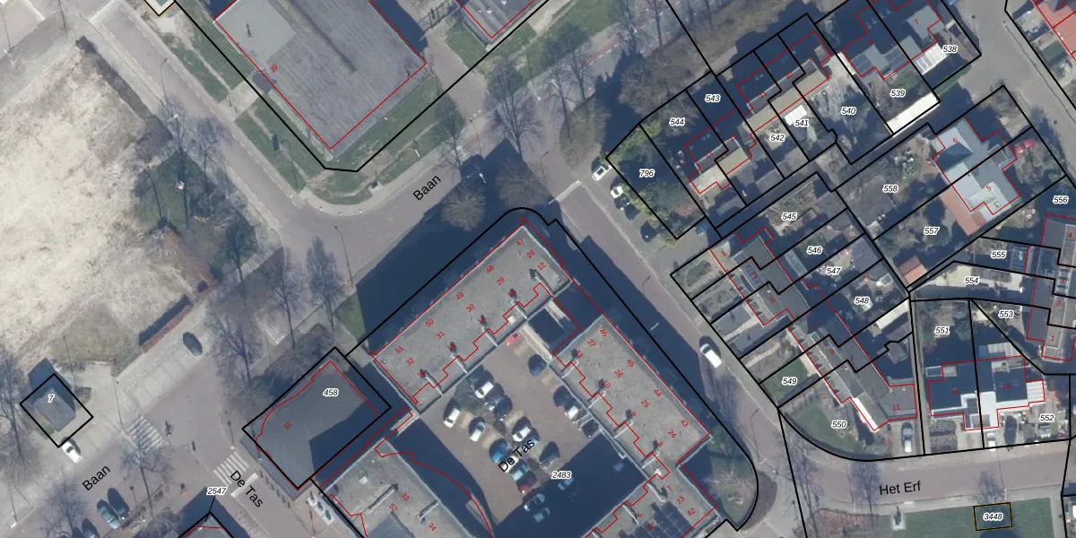 Het perceel waarop De Tas 29 staat heeft een oppervlakte van 4240 m². Dit is een zeer groot perceel. De perceeloppervlakte wordt geregistreerd door het Kadaster. Gedetailleerde informatie over de maten van dit perceel kunt u vinden in het rapport Kadastrale kaart met maatvoering van De Tas 29.