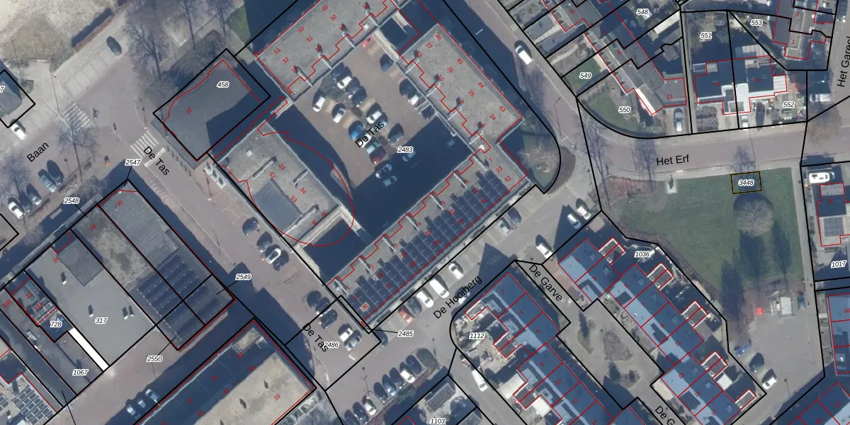 De Tas 9 is gelegen op kadastraal perceel DTN01E2483. Deze kadastrale aanduiding is uniek en wordt gebruikt door het Kadaster om eigendomsrechten en andere zakelijke rechten vast te leggen. Het perceel maakt onderdeel uit van de kadastrale gemeente Dronten.