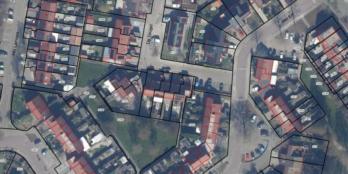 Gebruik de zoekbalk of klik op een perceel voor informatie over de adressen binnen dit perceel.