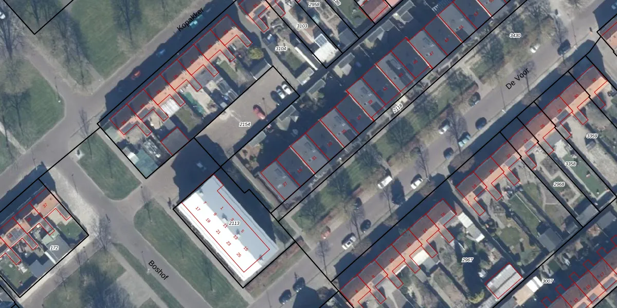 Het perceel waarop De Voor 31 staat heeft een oppervlakte van 4328 m². Dit is een zeer groot perceel. De perceeloppervlakte wordt geregistreerd door het Kadaster. Gedetailleerde informatie over de maten van dit perceel kunt u vinden in het rapport Kadastrale kaart met maatvoering van De Voor 31.