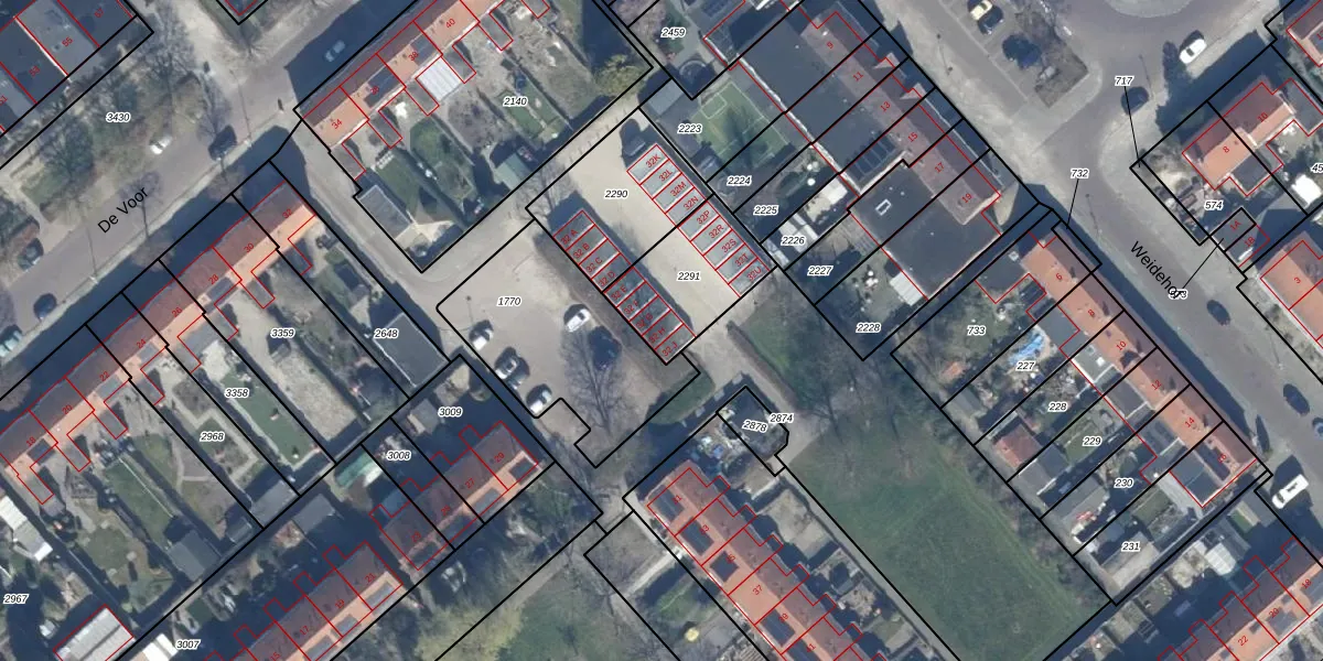 Het perceel waarop De Voor 32-H staat heeft een oppervlakte van 334 m². Dit is een groot perceel. De perceeloppervlakte wordt geregistreerd door het Kadaster. Gedetailleerde informatie over de maten van dit perceel kunt u vinden in het rapport Kadastrale kaart met maatvoering van De Voor 32-H.