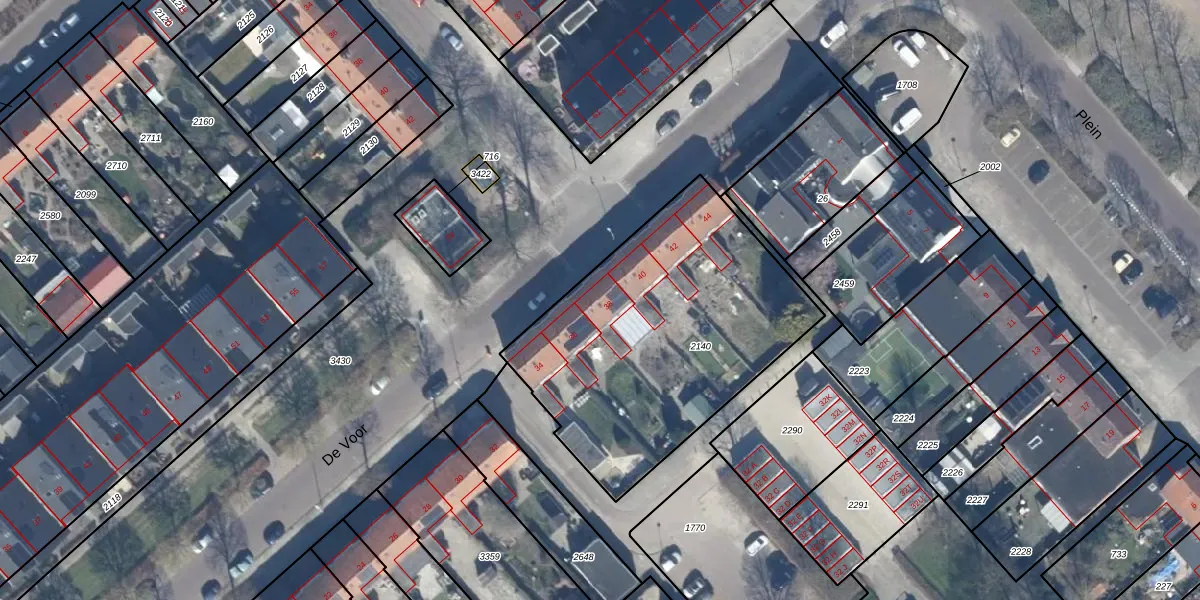 Het perceel waarop De Voor 38 staat heeft een oppervlakte van 1441 m². Dit is een zeer groot perceel. De perceeloppervlakte wordt geregistreerd door het Kadaster. Gedetailleerde informatie over de maten van dit perceel kunt u vinden in het rapport Kadastrale kaart met maatvoering van De Voor 38.