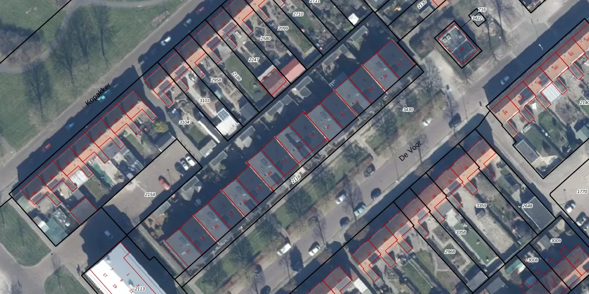 De Voor 43 is gelegen op kadastraal perceel DTN01E3104. Deze kadastrale aanduiding is uniek en wordt gebruikt door het Kadaster om eigendomsrechten en andere zakelijke rechten vast te leggen. Het perceel maakt onderdeel uit van de kadastrale gemeente Dronten.