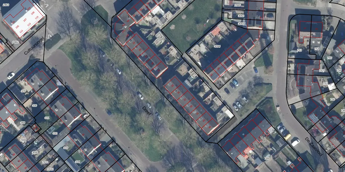 Dreef 33 is gelegen op kadastraal perceel DTN01E2913. Deze kadastrale aanduiding is uniek en wordt gebruikt door het Kadaster om eigendomsrechten en andere zakelijke rechten vast te leggen. Het perceel maakt onderdeel uit van de kadastrale gemeente Dronten.