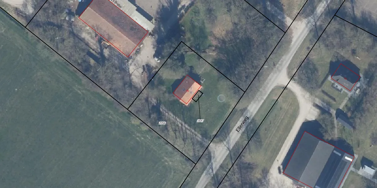 Het perceel waarop Ellerweg 20 staat heeft een oppervlakte van 2055 m². Dit is een zeer groot perceel. De perceeloppervlakte wordt geregistreerd door het Kadaster. Gedetailleerde informatie over de maten van dit perceel kunt u vinden in het rapport Kadastrale kaart met maatvoering van Ellerweg 20.