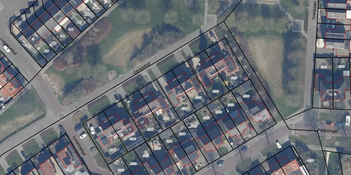 Het perceel waarop Gerstehof 25 staat heeft een oppervlakte van 281 m². Dit is een middelgroot perceel. De perceeloppervlakte wordt geregistreerd door het Kadaster. Gedetailleerde informatie over de maten van dit perceel kunt u vinden in het rapport Kadastrale kaart met maatvoering van Gerstehof 25.