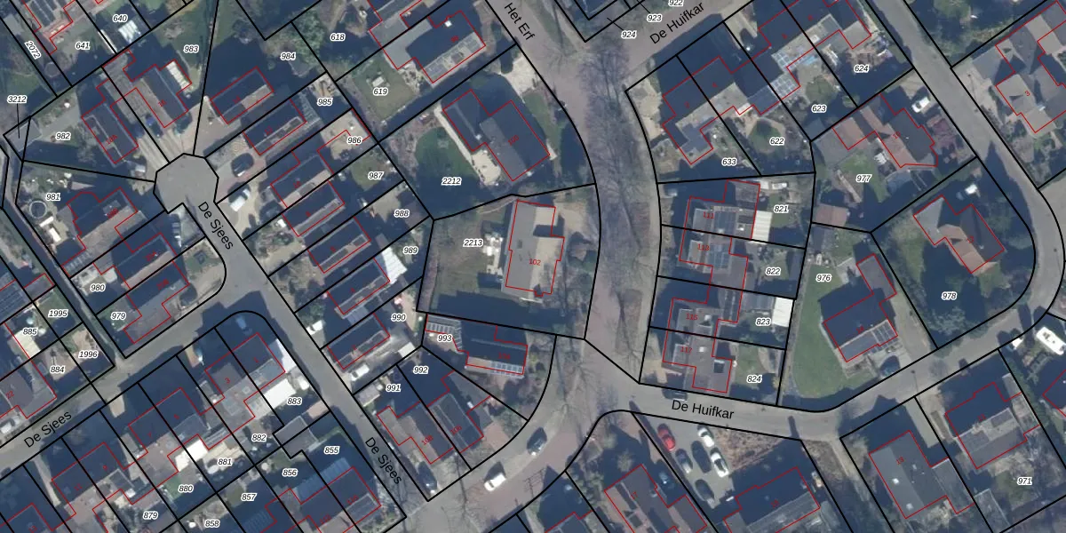 Het perceel waarop Het Erf 102 staat heeft een oppervlakte van 756 m². Dit is een groot perceel. De perceeloppervlakte wordt geregistreerd door het Kadaster. Gedetailleerde informatie over de maten van dit perceel kunt u vinden in het rapport Kadastrale kaart met maatvoering van Het Erf 102.